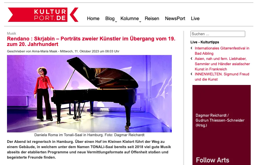 “The internationally renowned Italian pianist Daniela Roma, who lives in the USA, presented a selection of works by both composers on her German debut and it is immediately noticeable: she feels at home in this music”.