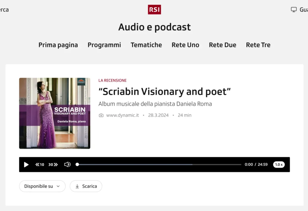 The presentation and distribution of Rendano’s work is an essential artistic task for Daniela Roma – a kind of mission: In addition to the recording productions and concerts, she is also the artistic director of the “Alfonso Rendano International Music Festival” in the Villa Rendano Cosenza, where The city theater was also named after him. After the pianist has dedicated herself to spreading Rendano’s music for over 20 years, there are more and more enthusiastic performers. In order to complete the album collection, Daniela Romawill also record Rendano’s piano concerto in the coming years, the manuscript of which she personally received from the composer’s nephew. This means that Rendano’s entire piano work can be heard and experienced by a wide audience and a large project is completed for Daniela Roma personally.